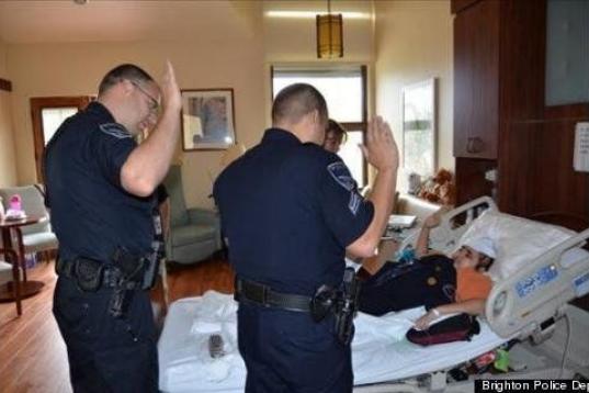 Un chaval con un tumor cerebral incurable se convirtió en el oficial de policía más joven de su ciudad en una ceremonia en un centro de salud de Brighton (Colorado)