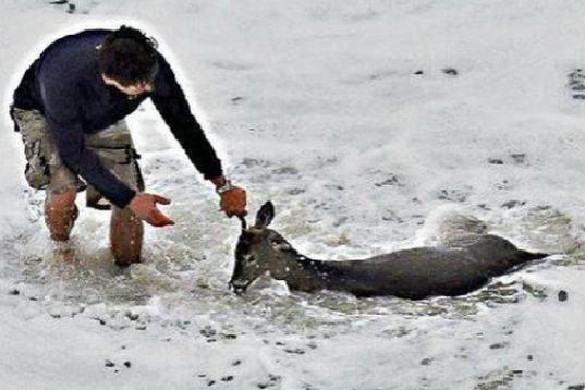 Varias historias como esta han sido virales este año: echarse al mar para rescatar a un animal. Es un gesto que emociona a muchos. Esta imagen se tomó en Monmouth Beach, Nueva Jersey, antes de la llegada del huracán Sandy.
