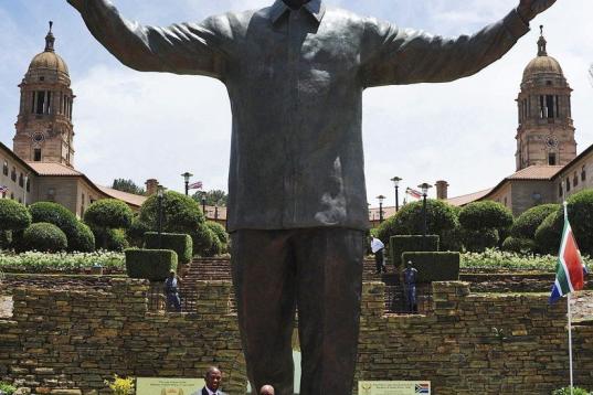 La figura, esculpida en bronce, se erige en los jardines de los Union Buildings, la sede del Gobierno sudafricano en la capital, que la semana pasada albergó la capilla ardiente con los restos del antiguo mandatario.