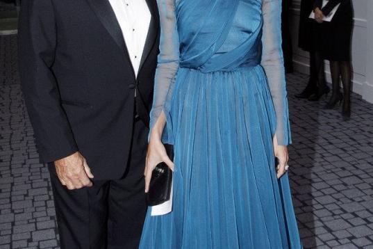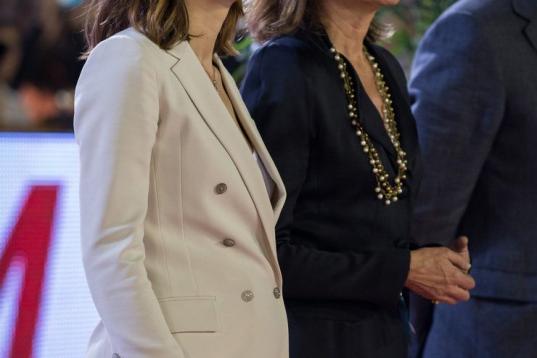 La baronesa Thyssen, Carmen Cervera y Carlota Casiragui junto a Bernard Fornas en la presentación de la exposición 'El arte de Cartier' en Madrid, octubre de 2012