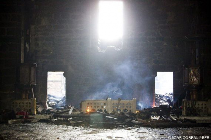 Las primeras hipótesis mantienen como causa del incendio la caída de un rayo en un transformador próximo a la iglesia, que se incendió y transmitió el fuego a través de los cables a la sacristía, cuyo tejado ya se ha venido abajo.