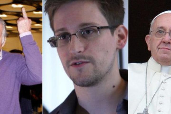 En segundo lugar en la votación de El Huffington Post lo ocupa Edward Snowden, con 146 apoyos (el 18,08%). En junio de 2013 hizo públicos, a través de los periódicos The Guardian y The Washington Post, documentos clasificados como alto secreto sobre varios programas de espionaje puestos en marcha por la NSA.