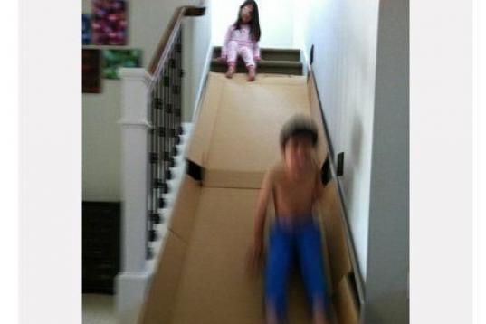 En una caja de cartón. Sólo se necesita la caja, tijeras, pegamento y un ratito de tu tiempo.