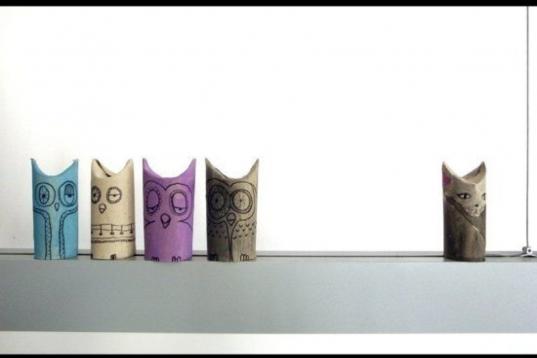 hilke:Owls made out of paper rolls.
