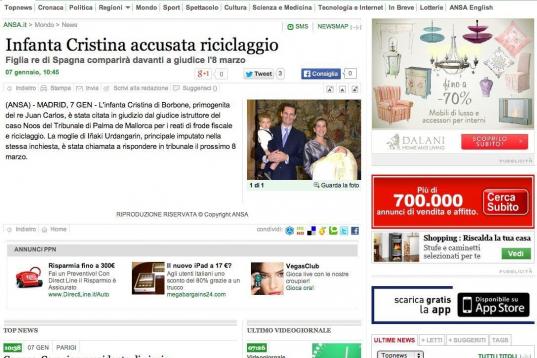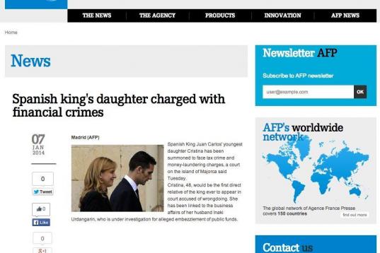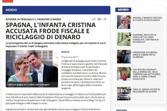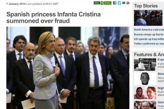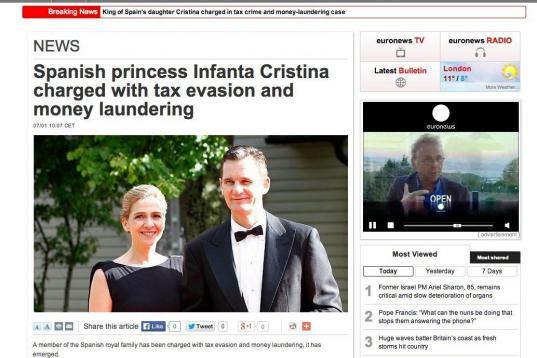 La princesa española Cristina, imputada por fraude fiscal y blanqueo de capitales