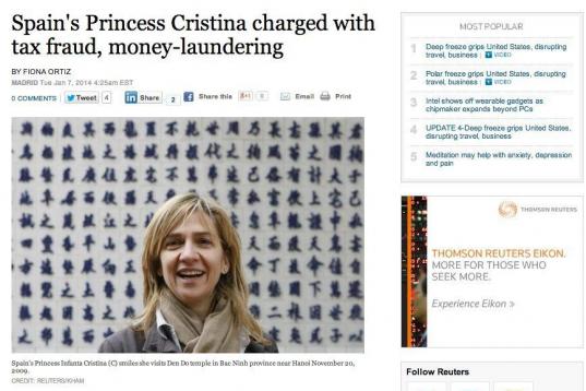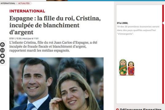 La hija del rey de España, acusada de fraude fiscal y blanqueo
