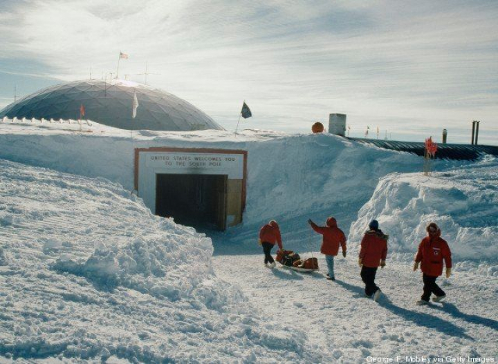 La base de Amundsen-Scott es una estación de Estados Unidos que se localiza en el centro del Polo Sur. Nunca está deshabitada. La temperatura más extrema registrada fue de -82,8 ºC y la media anual de la base oscila entre los -49 ° C. También allí las bases originales creadas en los años 50 están sepultadas bajo 10 o más metros de nieve. Cada tanto, se debe construir una nueva estructura encima de las que ya no existen.