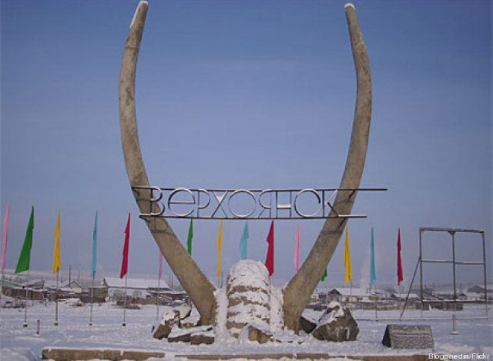 Verkhoyansk se encuentra a orillas del rio Yana, entre los montes y la cordillera Verjoiansk. Actualmente esta ciudad cuenta con 1.200 habitantes. Su record de temperatura más baja se produjo el 7 de febrero de 1892. En inviernos tienen una temperatura media de -46,2 °C.