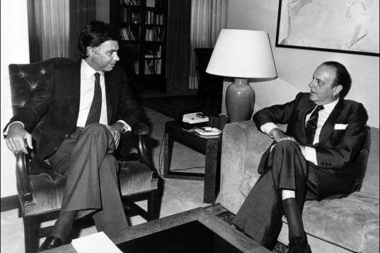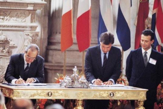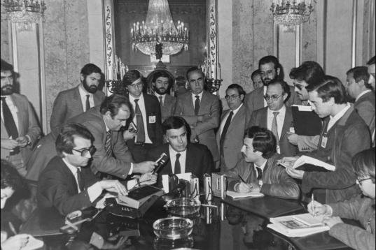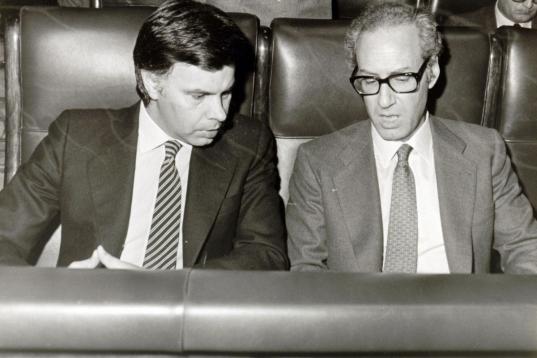 Firma de la entrada de España a la CEE junto al entonces ministro de Asuntos Exteriores Fernando Morán.