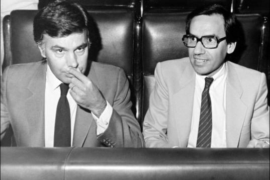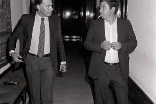 Triunfo socialista y sus celebración en el hotel Palace. En la imagen, Felipez González y Alfonso Guerra.