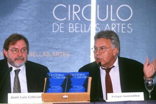 Con el actual presidente del Grupo Prisa, Juan Luis Cebrián, durante la presentación de un libro conjunto.