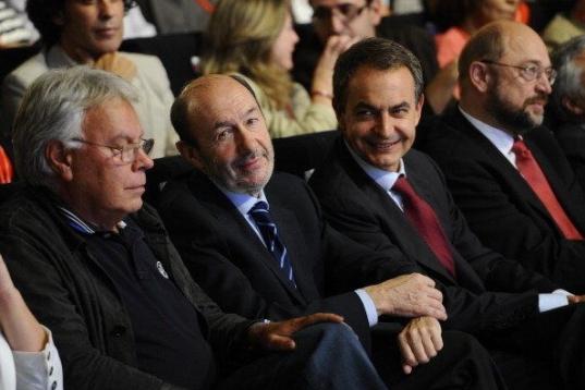Con Rubalcaba y Zapatero.