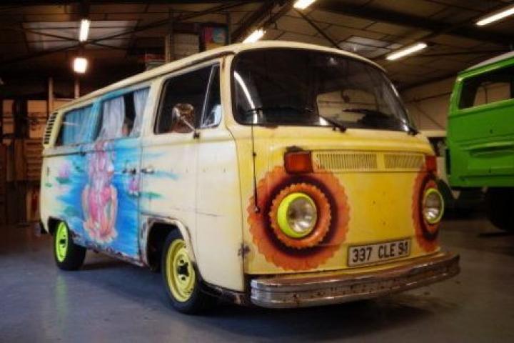 En su taller, encontramos además un ejemplar muy especial: la “Combi” que aparecía en la película de Claude Berri Felpudo maldito, de 1994. Él se ha encargado de volver a pintarla íntegramente, con los cristales incluidos. Y lo mejor es que todavía funciona, como demuestra el vídeo. “Un viejo hippie me llamó un día pidiéndome que la arreglara”, cuenta Adrien. “Pensaba hacerlo él mismo, pero no tenía suficiente dinero y no pudo terminarla”. “La camioneta está en perfecto estado tras haberle reemplazado el motor original”, nos cuenta el mecánico con una sonrisa de oreja a oreja.