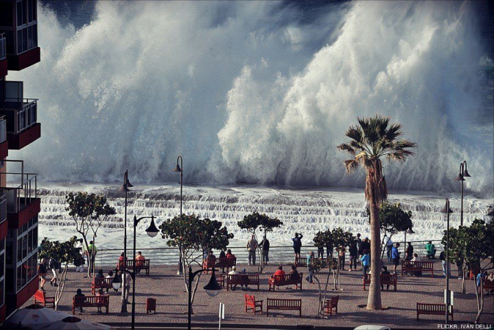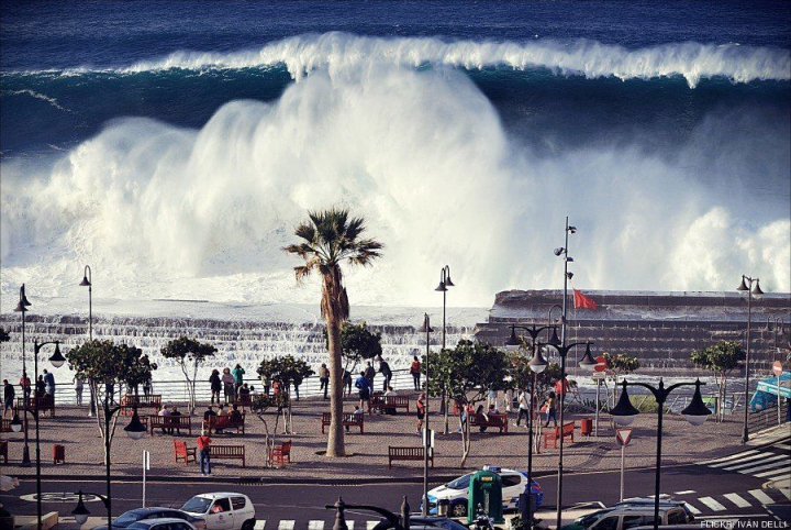 Como él mismo explica a El Huffington Post, este tipo de oleaje tan impresionante se produce cuando hay borrascas profundas entre las Azores y Madeira, cuyos vientos provocan olas de gran tamaño que rompen en la localidad tinerfeña de Bajamar, donde Delli tomó estas dos instantáneas.