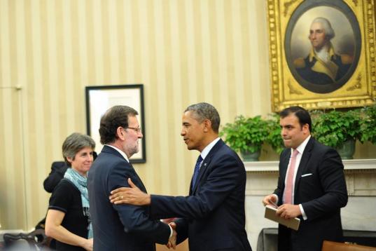 El jefe del Ejecutivo ha sido recibido por la directora adjunta de protocolo de la Casa Blanca, Rosemary Pauly y, después, se ha dirigido directamente al Despacho Oval para encontrarse con Obama, a quien le ha llevado un regalo, un facsímil de una biografía del explorador Vasco Núñez de Balboa.