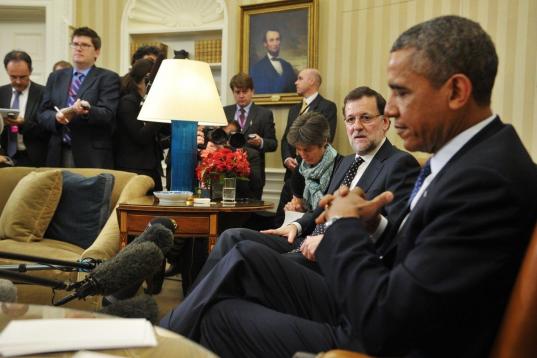 Una hora en la Casa Blanca con Barack Obama. Mariano Rajoy y el presidente de Estados Unidos han departido durante 60 minutos en los que, sobre todo, se ha hablado de economía y en los que el jefe del Ejecutivo español ha pedido inversiones norteamericanas en España.