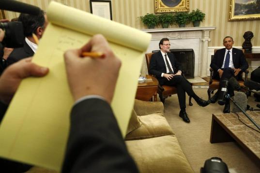 Al término de la reunión, Rajoy y Obama han hecho declaraciones a los periodistas en el Despacho Oval. La dirección de Comunicación de Presidencia del Gobierno ha decidido cuáles han sido los diez medios que han podido acceder al Despacho Oval y ha dejado fuera a la Cadena SER, al diario 'El Mundo' y a las radios catalanas RAC1 y Catalunya Radio.