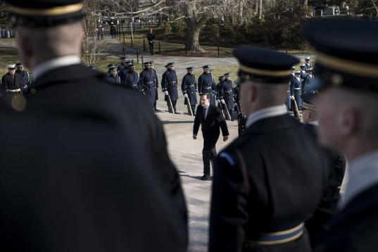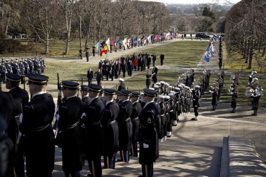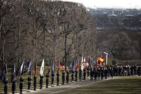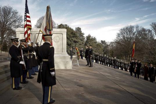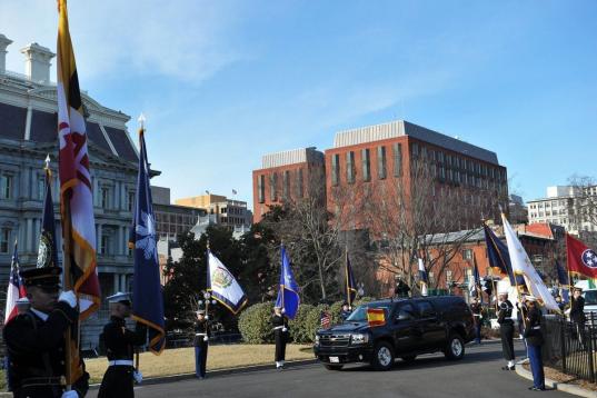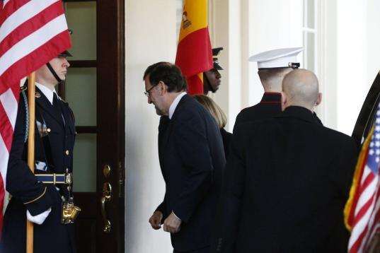 Rajoy ha llegado a la residencia presidencial estadounidense poco antes de las 14:15 horas (19:15 hora española) y se ha desplazado hasta la puerta principal del ala oeste de la Casa Blanca en un vehículo que llevaba banderines de España y de Estados Unidos. Un cordón de militares que sostenían las banderas de todos los Estados del país flanqueaba el camino hasta la puerta de acceso.