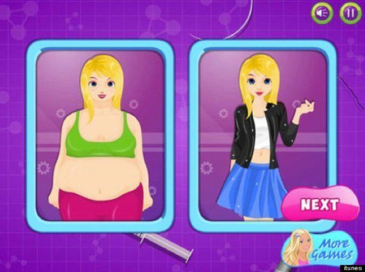 La aplicación, llamada Cirugía Plástica Doctor & Plastic Hospital para la versión de Barbie y ya retirada, anima a los usuarios a fijar tanto el cuerpo de Barbie como su aspecto como estándares de belleza.