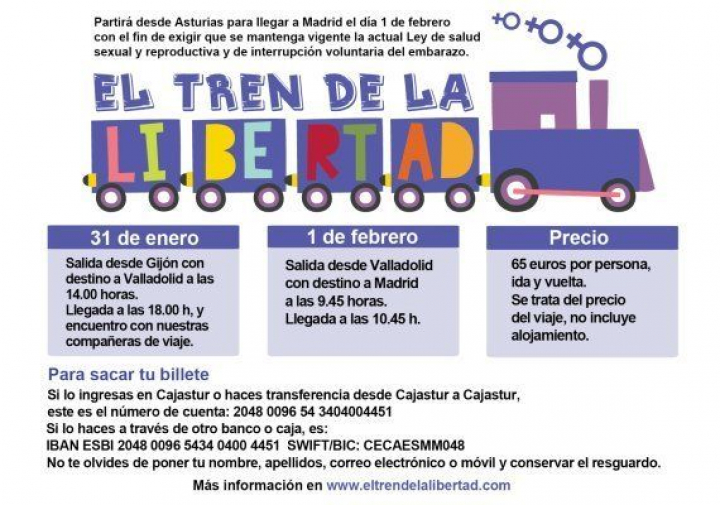 Se ha creado una página con información sobre esta iniciativa (www.eltrendelalibertad.com) en la que se explica el itinerario que se puede seguir desde Asturias a Madrid, haciendo noche en Valladolid el día 31. Sin embargo, los billetes para ese día están agotados, según informa la Tertulia Les Comadres.