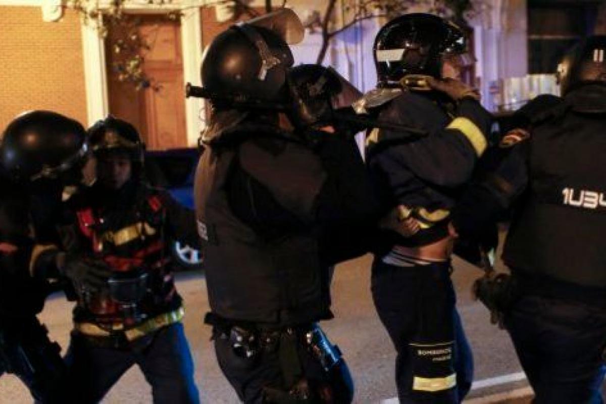 La versión de los bomberos es que, cuando ya quedaba poco para que se hubiera extinguido el incendio, los agentes antidisturbios exigieron con malos modos a los bomberos que apartasen su camión para que pudieran pasar sus furgones.
