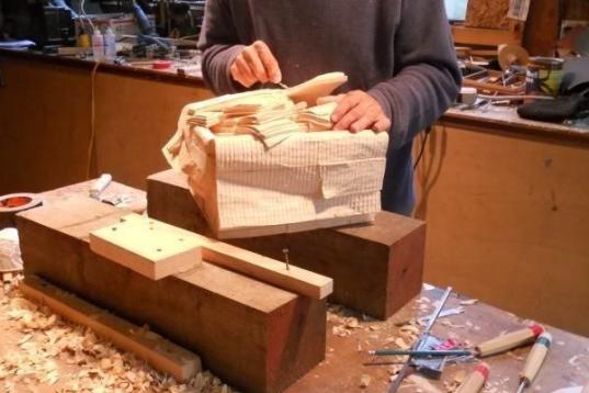 El artista norteamericano se ha convertido en un fenómeno en Internet gracias a sus asombrosas esculturas de madera, que reproducen cualquier objeto, incluidos los periódicos o... el dinero.