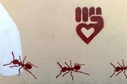 "Las hormigas son las olvidadas, sin voz, anónimas, marginadas, víctimas del capitalismo. (...) Forman una colonia que lucha, hace sacrificios ciegamente por la reina y su monarquía (. ...) Es hora de que el pueblo diga a su reina que sólo gracias a él tiene mucho poder ", escribió el artista en su página de Facebook.