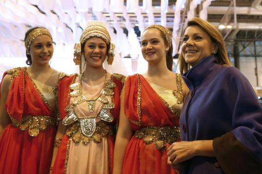 La presidenta de Aragón, Luisa Fernanda Rudi, también ha querido tener una foto 'histórica' y ha vendido el Aragón medieval. Los que se han acercado hasta el pabellón de la comunidad han podido practicar hasta rafting y recibir un masaje. C...