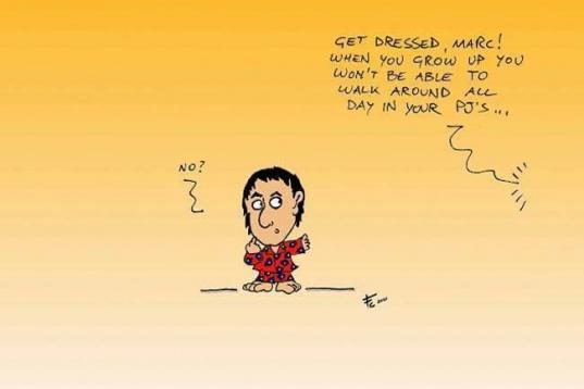 "Vístete Marc. Cuando crezcas no vas a poder ir por ahí todo el día en pijama", Le dicen sus padres a Marc Jacobs. Él lo pone en duda.