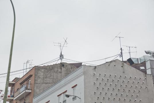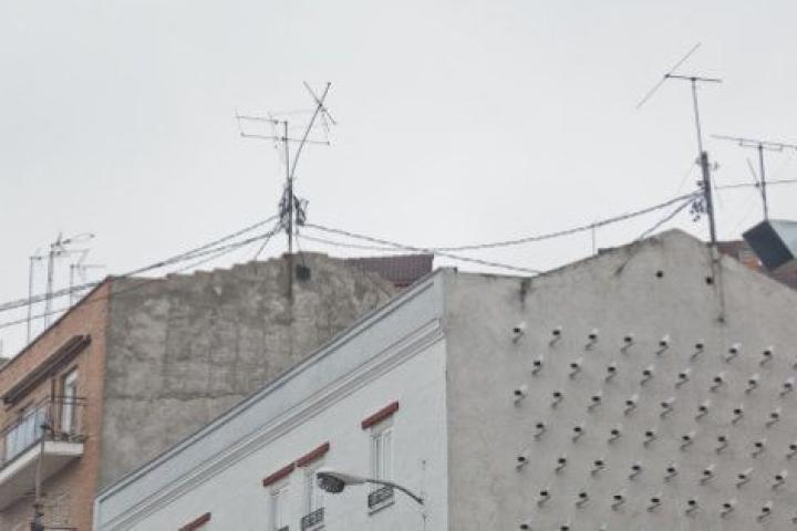 Podría ser la esquina más vigilada de España: 150 cámaras de seguridad adornan un muro de esta casa de Madrid.
