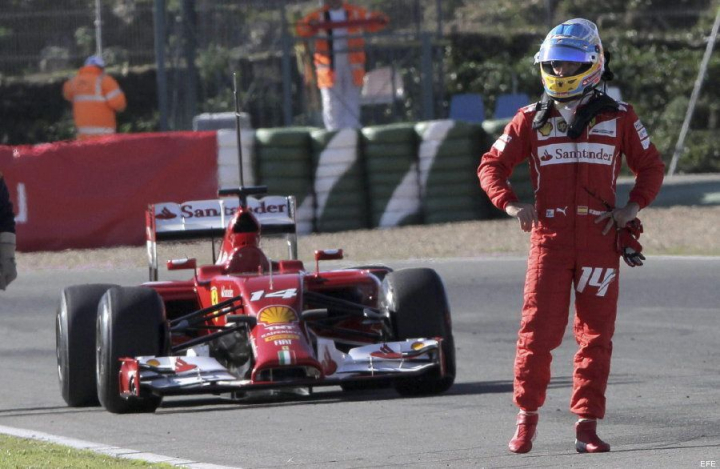 Fernando Alonso ha estrenado su nuevo Ferrari en el circuito de Jerez. Pese a pararse cuando ni siquiera había rodado 30 vueltas, el piloto asturiano ha podido completar finalmente 58 vueltas al circuito, tal y como había programado la escudería italiana, informa el diario AS.