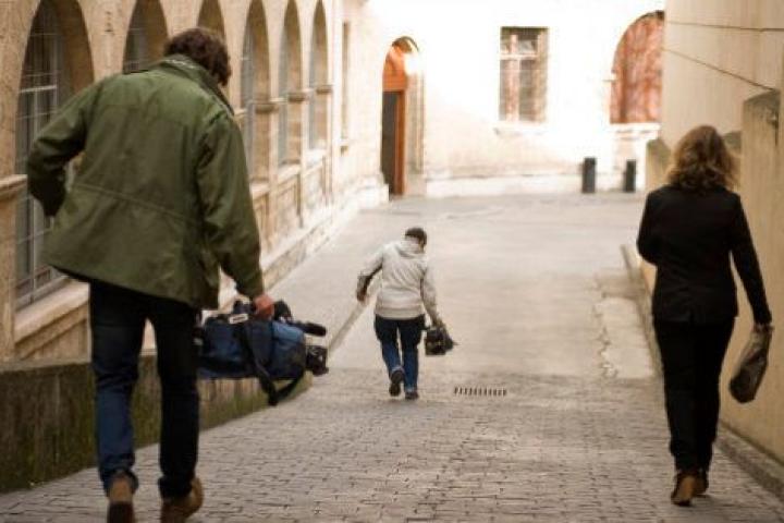 Dado que la citación tiene lugar un sábado, el edificio judicial se encuentra cerrado al público por su entrada principal, de forma que todas las personas tienen que acceder por la parte trasera del edificio, donde se encuentra la rampa, que da acceso al juzgado de guardia.