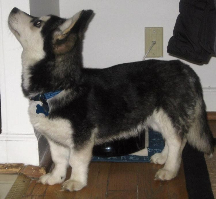 Un husky siberiano y un corgi funden sus corazones en una mezcla que nos gusta llamar "Horgi" o "Siborgi."