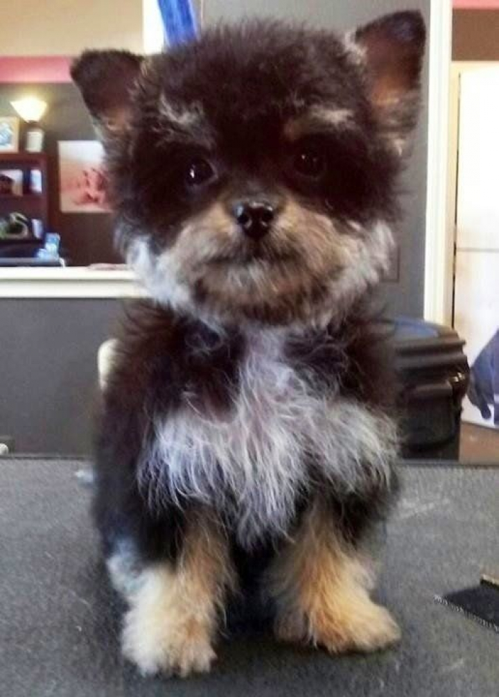 Este dulce y pequeño cruce entre un yorkshire terrier y un caniche se llama Yo-yopoo o Yorkiedoodle. No importa cómo lo llames, es muy dulce.