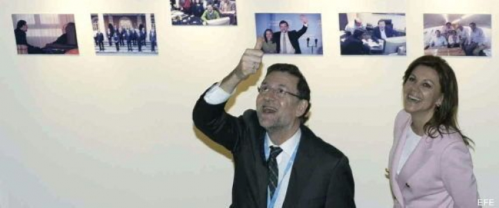 La también presidenta de Castilla-La Mancha ha transmitido estas ideas ante el presidente del Gobierno, Mariano Rajoy, y la cúpula del partido en primera fila, donde también se ha situado el marido de Cospedal, Ignacio López del Hierro, en plena polémica política por su contrato con Liberbank.