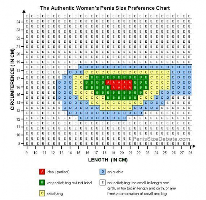 El Auténtico Gráfico de las Preferencias Femeninas sobre el Tamaño del Pene (título original: The Authentic Women's Penis Size Preference Chart) mide el ratio de longitud: contorno del miembro masculino desde "ideal" a "no satisfactorio".
