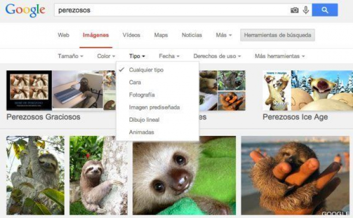 ¿Buscas un paisaje urbano en blanco y negro? ¿Sólo dibujos? ¿Las fotos más recientes del pelo de Beyoncé? Incluso puedes usar Google para buscar GIFs: basta con elegir "Animadas" en el menú de "Tipo".