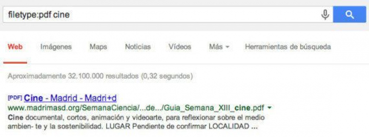Teclea "filetype:pdf" antes de tu búsqueda y los resultados serán sólo de documentos en PDF. Otras búsquedas comunes son .docx, .pptx y .xlsx. (los archivos de música son algo más complicados).