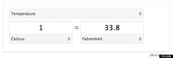 Si escribes "Celsius to Fahrenheit", en Google.com, aparecerá este útil conversor de arriba. Google puede convertir masa, longitud, velocidad, volumen, área, temperatura y capacidad de almacenamiento digital. También te dirá el tipo de cambio entre euros y rupias indias, o de cualquier moneda. Pero para que salga la caja de convertir, tienes que poner el idioma de Google como "inglés" (cómo hacerlo te lo explicaremos más bajo).
