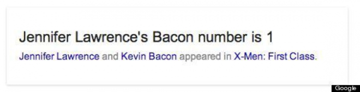 Si escribes el nombre de cualquier actor y añades "Bacon number" Google te dará su grado de separación de relación a Kevin Bacon. El juego nació de la teoría de "los seis grados de separación", que sostiene que dos personas cualquiera están relacionadas por no más de seis conocidos. Este truco sólo sirve si tienes configurado el inglés como el idioma de Google (más abajo las instrucciones para hacerlo).