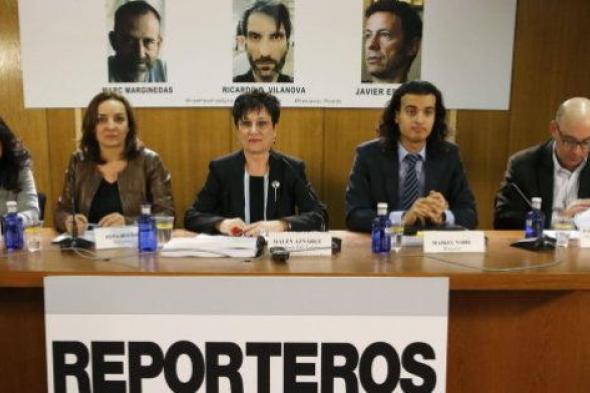 "Quiero recordar que ahora mismo tenemos a tres colegas españoles secuestrados en Siria. Y no debemos olvidarlo", ha resaltado Aznárez en alusión a los periodistas Marc Marginedas, Ricardo G. Vilanova y Javier Espinosa. Marginedas, periodista de El Periódico, fue capturado por yihadistas hace cinco meses. Vilanova (freelance) y Espinosa (El Mundo) fueron secuestrados por el FSA (Free Sirian Army) el pasado 16 de septiembre.