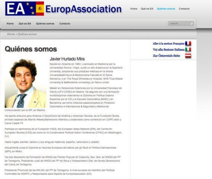 Sin embargo, el propio Hurtado, en un currículum que tiene colgado en la web EuropAssociation.com, de la que dice ser "responsable para España", se presenta como "presidente provincial de las NNGG del PP de Tarragona". Además, también afirma haber sido, entre otros cargos, "secretario general de NNGG del PP de Tarragona" y "presidente local de NNGG del PP de Reus".