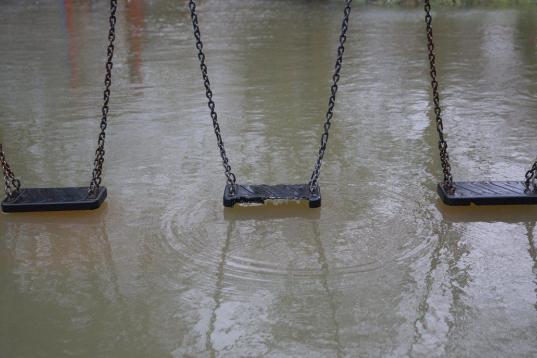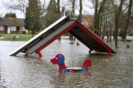 El agua del río alcanza unos columpios para niños en Wraysbury. La semana pasada, el Gobierno británico prometió destinar 130 millones de libras adicionales (157 millones de euros) a mantener y reparar las defensas contra inundaciones, y ha ...