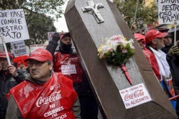 En una manifestación encabezada por los secretarios generales de UGT y CC.OO, Cándido Méndez e Ignacio Fernández Toxo, los trabajadores de Coca-Cola Iberian Partners han lanzado gritos como "Sí se puede parar este ERE", "Si España no produce, España no consume" o "No consuma Coca-Cola" . Además de protestar contra la reforma laboral, han simulado un entierro alzando a hombros un ataúd que representaba a los trabajadores afectados por el ERE.