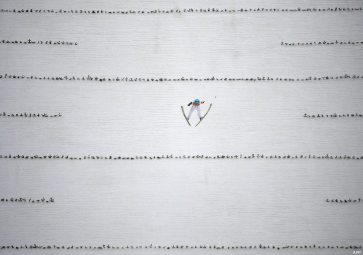 Si ayer la niebla fue la protagonista, hoy lo ha sido la nieve. Sochi 2014 sigue dando imágenes espectaculares: