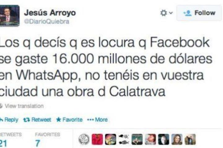 Los análisis sobre la compra de WhatsApp por Facebook en Twitter se mueven entre chascarrillos de asombro, el susto y las intenciones de cambiarse a otro sistema de mensajería y el festival del humor.