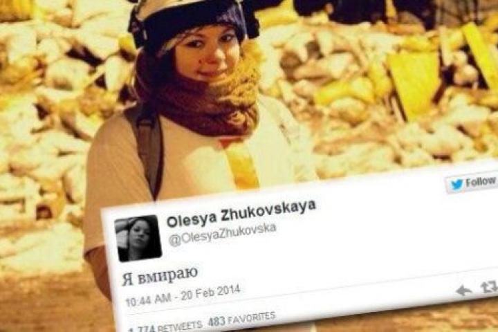 Pocas horas después del tuit, varios medios, incluido AP, confirmaron la muerte de Olesya Zhukovskaya. Sin embargo, otras fuentes dieron informaciones contradictorias, incluido el Twitter de Euromadián, que aseguró rápidamente que la joven había sobrevivido tras ser operada. "Olesya Zhukovskaja fue gravemente herida por la bala de un francotirador. Fue operada, ¡pero está viva!", fue el mensaje.