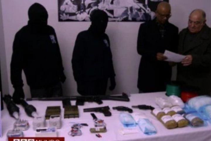 Tras grabar las imágenes que se difundieron el pasado viernes, recogieron las pistolas, el fusil y el explosivo expuesto, lo guardaron en una caja de cartón que precintaron y que se llevaron de la vivienda.