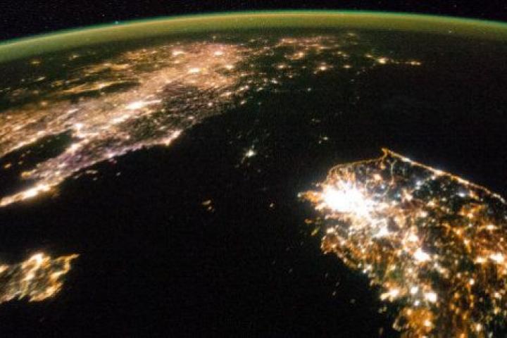 Las fotografías tomadas desde el espacio de noche normalmente muestran donde hay gente: solo hay que seguir las luces. Pero los casi 25 millones de habitantes de Corea del Norte parecen desvanecerse completamente de noche en esta imagen tomada recientemente desde la Estación Espacial Internacional.