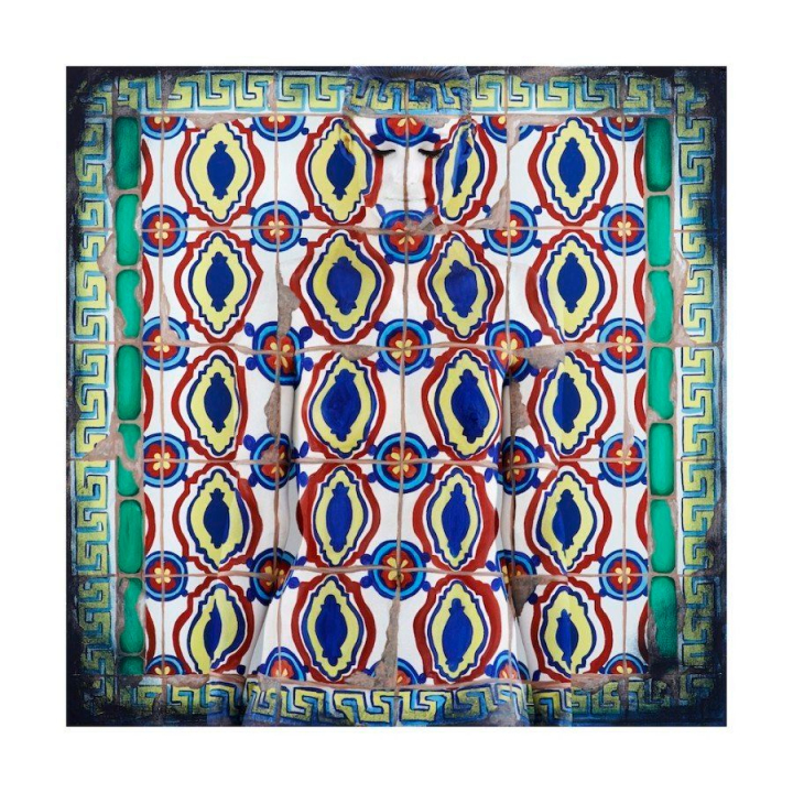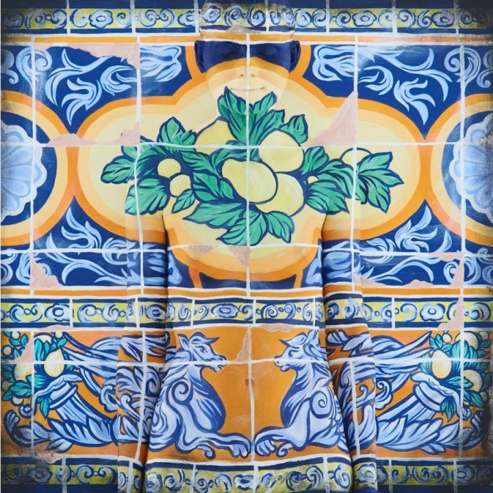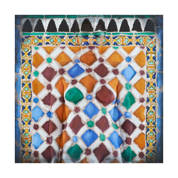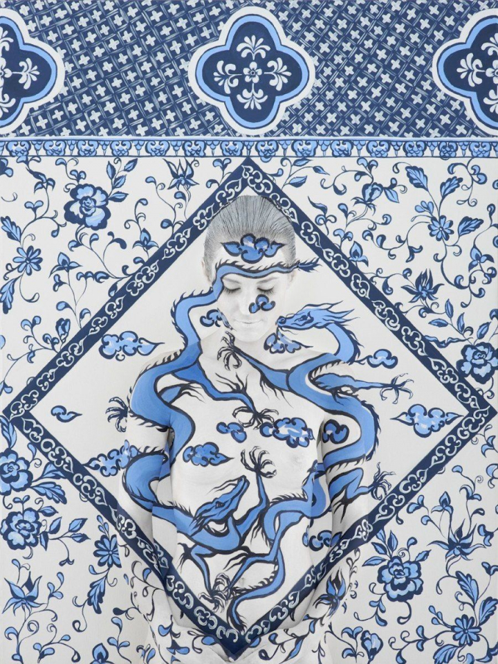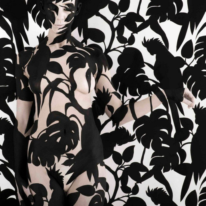 Entre las formas y patrones de los siguientes imágenes hay personas desnudas escondidas. El camuflaje funciona porque la artista se ha ocupado de imitar los patrones hasta en sus imperfecciones.